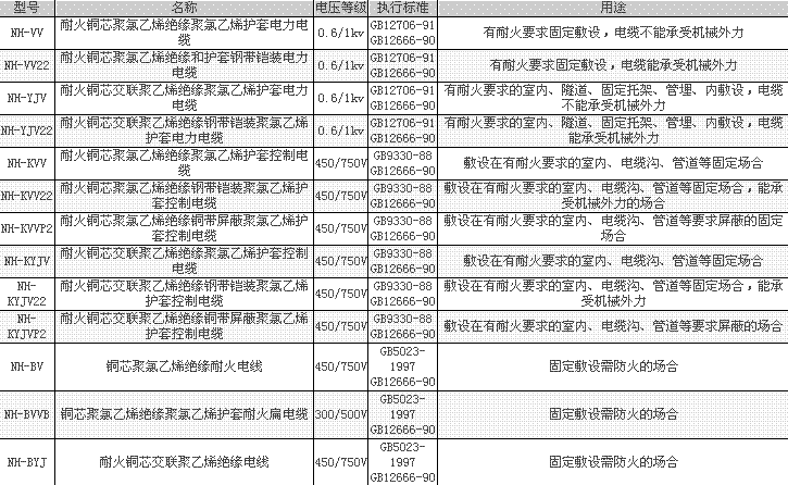 本产品适用于固定敷设需防火的场合。如高层建筑、地下铁道、核电站、发电厂、机场、油田、化工厂及重要的工矿企业等与消防救生有关场合,同时又是应急电源、消防泵、电梯、通讯信号系统必备电缆。型号和M称: